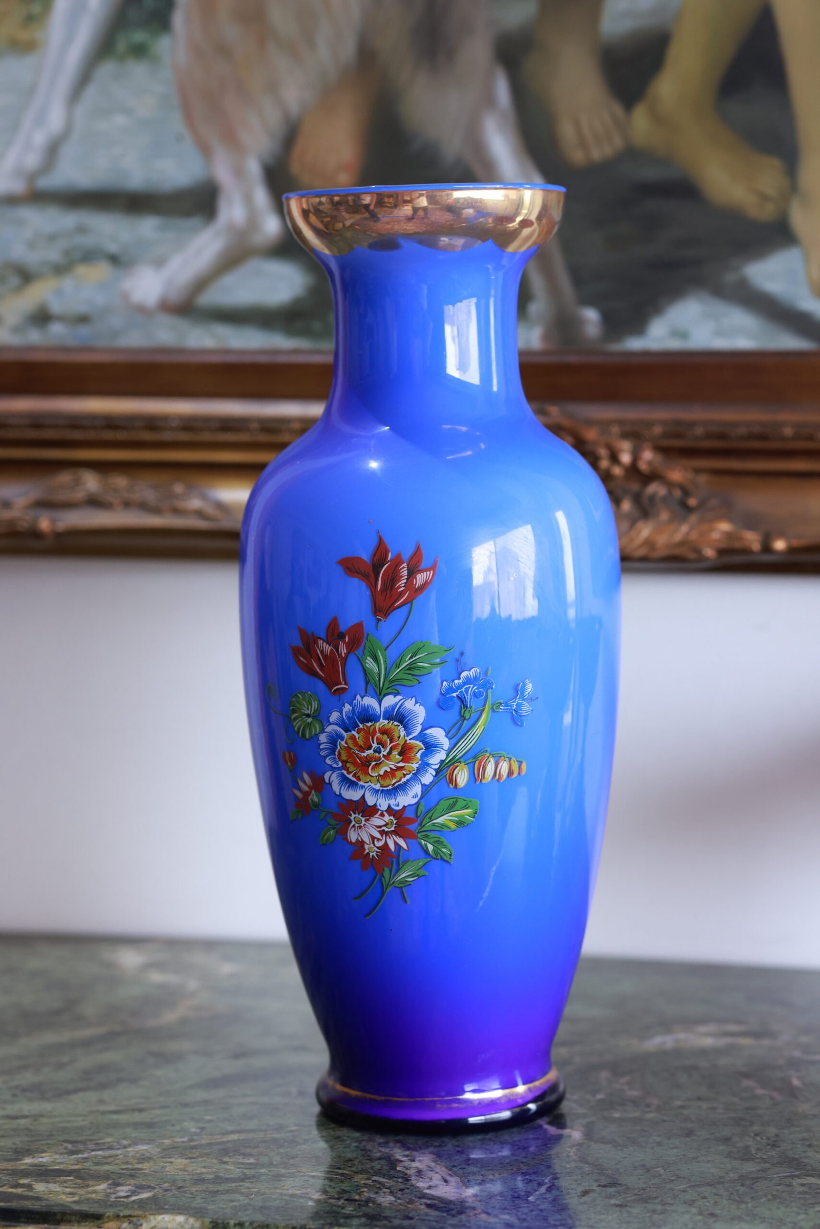 Blue gitane vase, with 24 karat gold